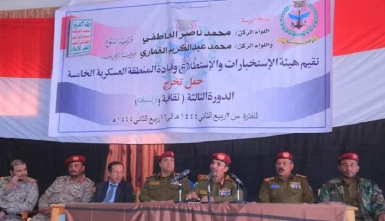 جاء ذلك في كلمة له خلال حفل نظّمته هيئة الاستخبارات والاستطلاع وقيادة المنطقة العسكرية الخامسة، اليوم الخميس، في اختتام الدورة الثالثة “استخبارية، ثقافية”.