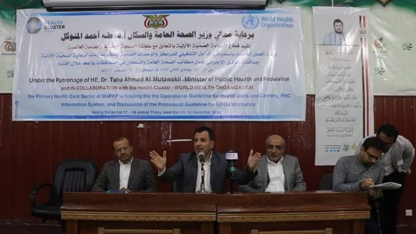 وفي الورشة أكد وزير الصحة العامة والسكان، الدكتور طه المتوكل، حرص الوزارة على نشر الخدمات الصحية، وفقا لنهج الرعاية الصحية الاولية من تجهيز وتشغيل الوحدات والمراكز الصحية، في كافة المحافظات لتسهيل تقديم خدمات الرعاية الأولية .. مشيرا إلى أنه انطلاقا من الرؤية الوطنية لبناء الدولة تم تطوير وتحديث الدليل الوطني للنماذج النمطية للوحدات والمراكز الصحية بما يتواكب مع المستجدات والتطورات الراهنة.