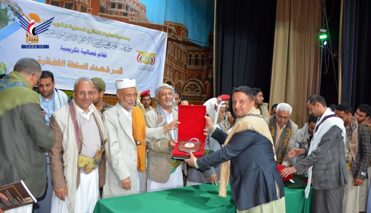 كرّم عضو المجلس السياسي الأعلى جابر الوهباني ورؤساء مجلسي النواب الأخ يحيى علي الراعي والقضاء الأعلى القاضي أحمد يحيى المتوكل والمحكمة العليا القاضي الدكتور عصام السماوي، اليوم أسر شهداء السلطة القضائية بمناسبة الذكرى السنوية للشهيد.