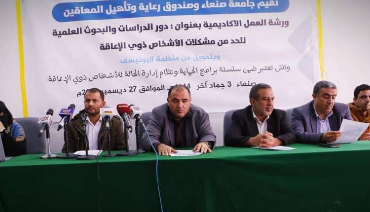 بالصــــور:صندوق رعاية وتاهيل المعاقين وجامعة صنعاء ينضمان ورشة عمل اكاديمية حول دور الدراسات والبحوث العلمية للحد من مشكلات الأطفال والأشخاص ذوي الإعاقة.