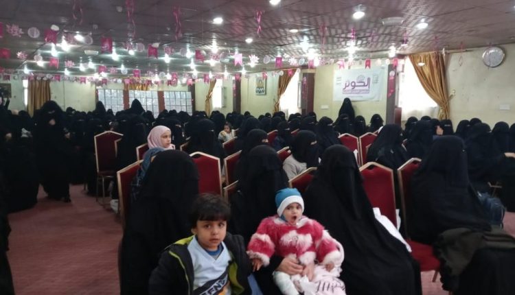 دشنت الهيئة النسائية الثقافية، اليوم الأحد بصنعاء، فعاليات ذكرى مولد السيدة فاطمة الزهراء عليها السلام (اليوم العالمي للمرأة المسلمة ) تحت شعار “التربية في الإسلام” بحفل خطابي.