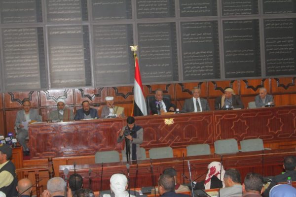 أكد رئيس مجلس النواب، الأخ يحيى علي الراعي، أهمية تعزيز الصف الوطني وتوحيد الجهود للتصدي للمؤ امرات، التي يحيكها تحالف العد وان، والآثار المترتبة عليه، ومكافحة الفسا د.