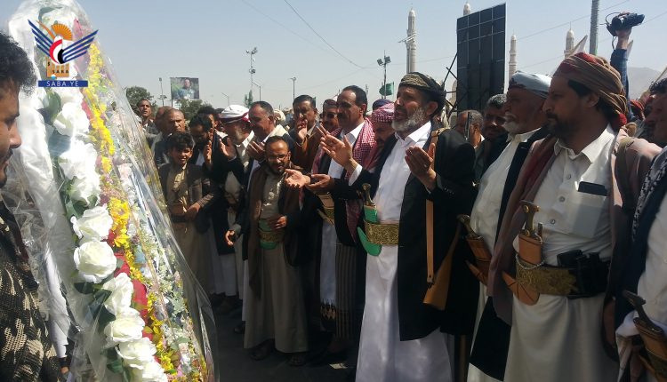 من جانبهم أكد المشايخ والوجهاء وقيادات ومسؤولو التلاحم القبلي بصنعاء والمحافظات، أن تضحيات الشهداء ستظل خالدة في ذاكرة الأجيال يستلهم الجميع منها معاني الفداء والتضحية والصمود في مواجهة العدوان ومخططاته.