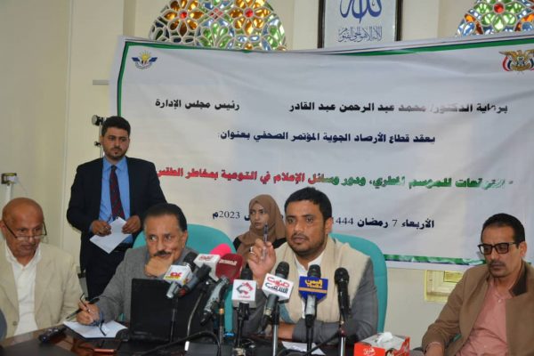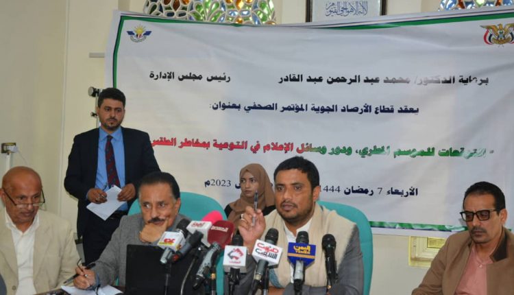 نظم قطاع الأرصاد الجوية التابع للهيئة العامة للطيران المدني والأرصاد اليوم بصنعاء، مؤتمراً صحفياً عن التوقعات للموسم المطري ودور وسائل الإعلام في التوعية بمخاطر تقلبات الطقس.