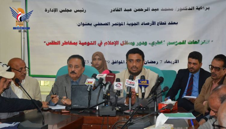 نظم قطاع الأرصاد الجوية التابع للهيئة العامة للطيران المدني والأرصاد اليوم بصنعاء، مؤتمراً صحفياً عن التوقعات للموسم المطري ودور وسائل الإعلام في التوعية بمخاطر تقلبات الطقس.