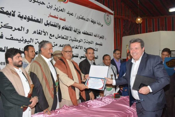 فيما أكد القائم بأعمال منظمة اليونيسف باليمن “جنلوكا بونو” ومنسقة الصليب الأحمر باليمن “ماريا اورديزا”، أهمية التعاون والتنسيق لإنجاح حملات التوعية بمخاطر الألغام والقنابل العنقودية ومخلفات الحرب في هذه المرحلة التي يمر بها اليمن واستمرار دعم أنشطة المركز التنفيذي للتعامل مع الألغام.