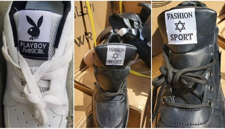 ضبط كمية من الأحذية عليها النجمة الصهيونية وشعارات مشبوهة