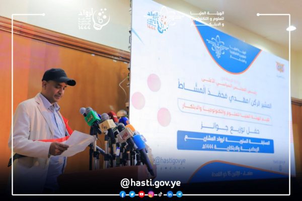 أقامت الهيئة العليا للعلوم والتكنولوجيا والابتكار.، اليوم، حفل توزيع جوائز المسابقة السنوية لرواد المشاريع الإبداعية والابتكارية 1444هـ، برعاية رئيس المجلس السياسي الأعلى المشير الركن مهدي محمد المشاط.