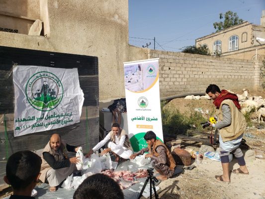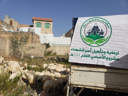 دشنت مؤسسة الشهداء لرعاية وتأهيل أسر الشهداء ، اليوم، في العاصمة صنعاء وعدد من المحافظات مشروع توزيع الأضاحي لأسر الشهداء الأشد فقرا في عموم محافظات الجمهورية وبإجمالي ما يقارب ١٥٠ مليون ريال.