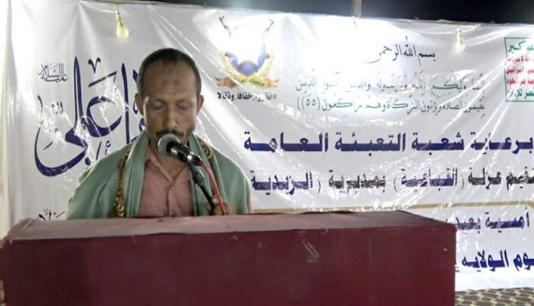 نظمت شعبة التعبئة العامة بمحافظة الحديدة، اليوم السبت، في مديرية الزيدية فعالية ثقافية بذكرى يوم ولاية الإمام علي عليه السلام.