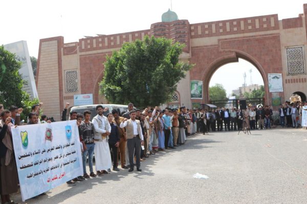 نظم أكاديميو وموظفو وطلاب جامعة صنعاء اليوم الأحد ، وقفة تنديداً بـ الإساءات المتكررة التي ترتكبها السويد والدنمارك بإحراق نسخ من القرآن الكريم.
