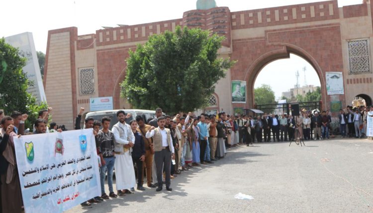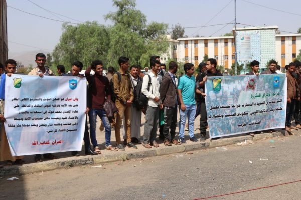 كوادر وطلاب جامعة صنعاء يستنكرون جريمة إحراق المصحف الشريف