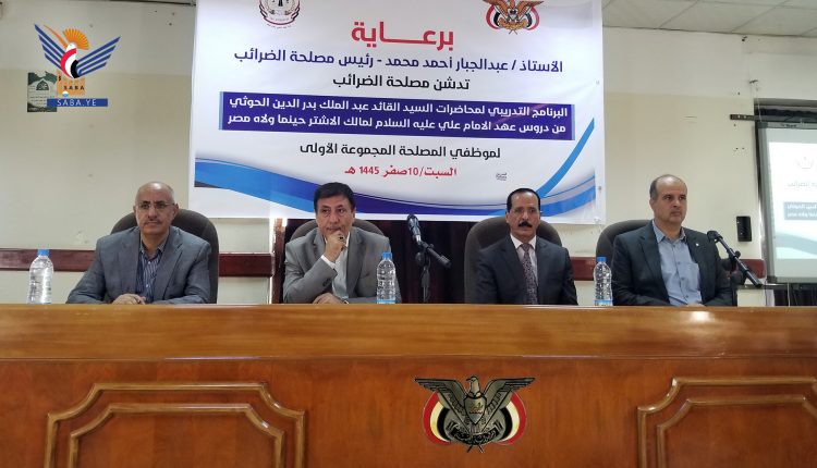 الضرائب تدشن البرنامج التدريبي لمحاضرات قائد الثورة من دروس عهد الإمام علي لمالك الأشتر