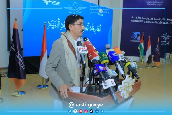 وقال “نعلن اليوم من العاصمة صنعاء بدء توجيه البحوث والدراسات نحو الأولويات الوطنية بما يحقق التطلعات الهادفة إلى تنمية مستدامة على كافة المستويات التي حددتها الخارطة البحثية للجمهورية اليمنية في قطاعاتها العشرة”.