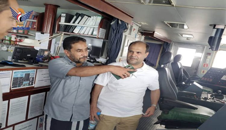 تفقد وكيل مصلحة الجمارك، عدنان الغفاري، اليوم، سير العمل في جمرك ميناء الحديدة.