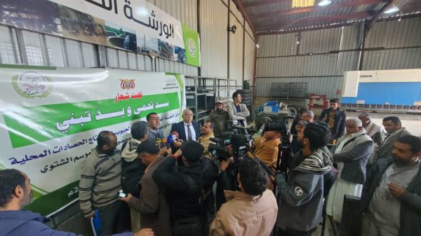 وفي التدشين أكد وزير الزراعة أهمية إنتاج هذه المعدات والمستلزمات لزيادة الإنتاج الزراعي وتخفيض الكلفة وتمكين المنتج الزراعي من المنافسة.. لافتا إلى هذا التدشين يمثل أول نشاط تصنيعي يشمل تصنيع عشر درًاسات حبوب لاستخدامها في حصاد محصول القمح للموسم الشتوي القادم في الجوف.