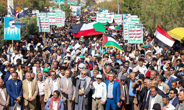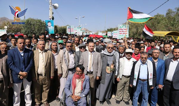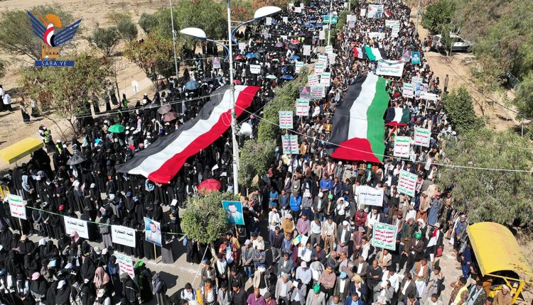 نظمت قيادات ومنتسبو جامعة صنعاء اليوم مسيرة حاشدة تضامناً مع الشعب الفلسطيني ودعماً لعمليات القوات المسلحة اليمنية ضد الكيان الصهيوني والأمريكي وتنديداً بمجازر الإبادة الجماعية بحق أطفال غزة.