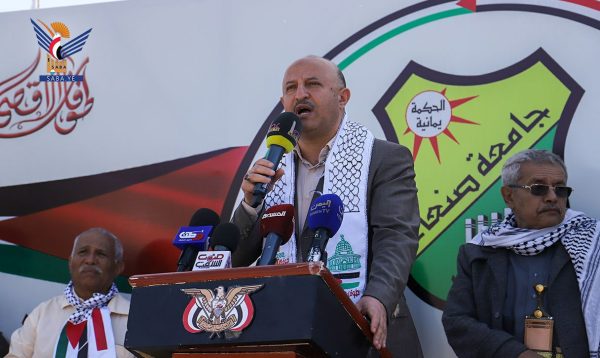 بدوره أكد رئيس جامعة صنعاء، أن طلاب الجامعة يقفون إلى جانب القيادة الثورية في كل القرارات التي تتخذها دفاعاً عن المظلومين والمحرومين من النساء والأطفال الذين تستهدفهم آلة القتل الصهيونية الأمريكية.