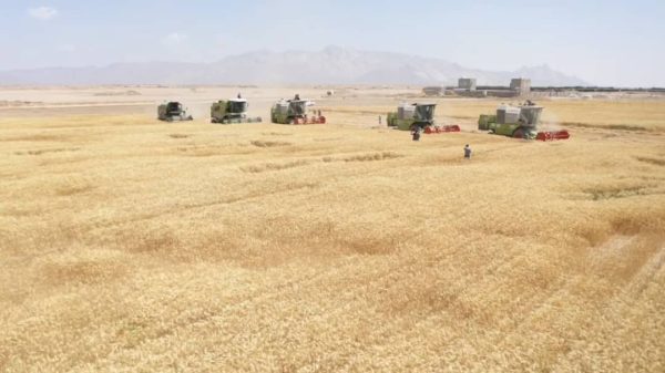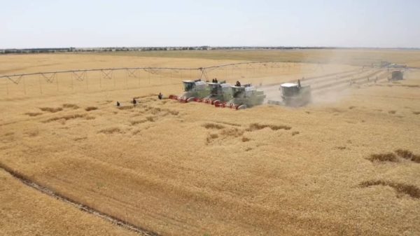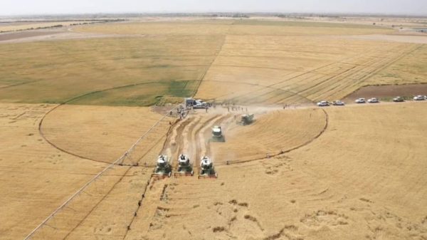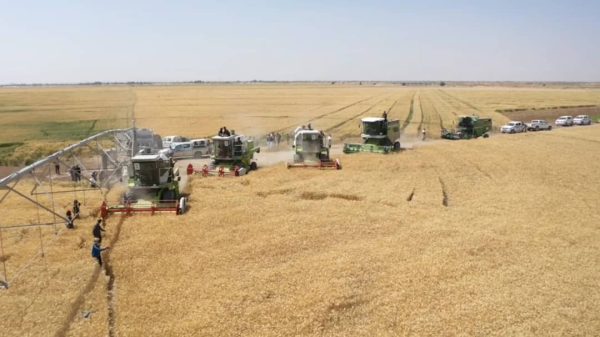 بالصور :المؤسسة العامة لتنمية وإنتاج الحبوب تدشن موسم الحصاد الشتوي لمحصول القمح في محافظة الجوف