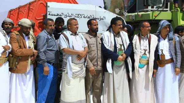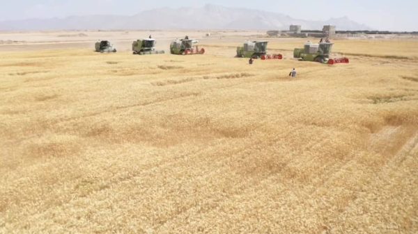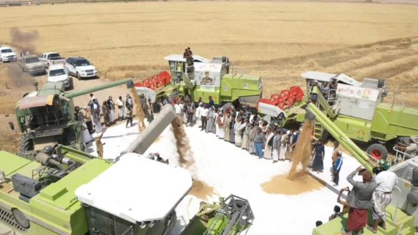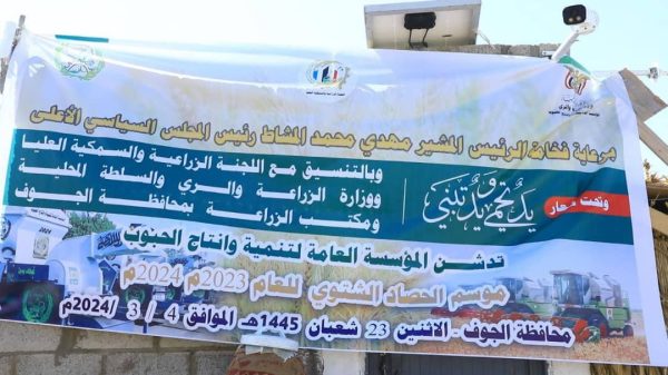 برعاية رئيس المجلس السياسي الأعلى فخامة الرئيس مهدي محمد المشاط.. دشنت المؤسسة العامة لتنمية وإنتاج الحبوب بمحافظة الجوف وبالتنسيق مع اللجنة الزراعية والسمكية العليا ووزارة الزراعة والري والسلطة المحلية ومكتب الزراعة بمحافظة الجوف، موسم الحصاد الشتوي لمحصول القمح للعام 2023 2024م، تحت شعار (يد تحمي ويد تبني).