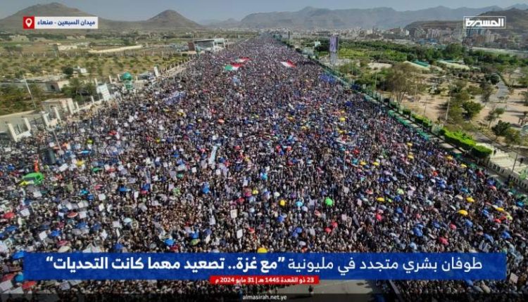 صنعاء.. مليونية جديدة في صنعاء نصرة لفلسطين تحت شعار (مع غزة.. تصعيد مهما كانت التحديات)