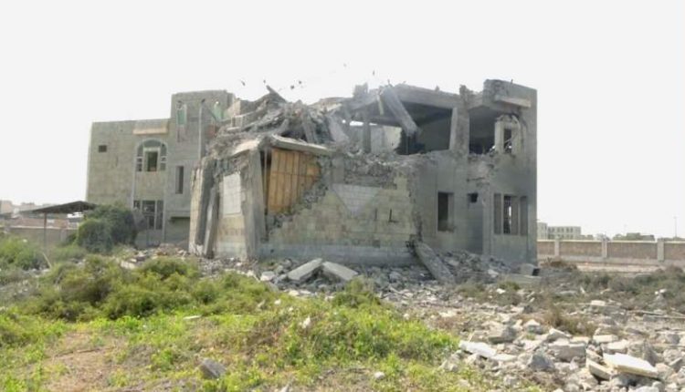 مؤتمر صحفي لحقوق الإنسان والسلطة المحلية أمام أنقاض إذاعة الحديدة
