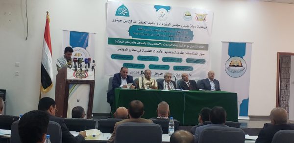 وعبر عن الأمل في اضطلاع الجامعات بدورها كمنارات للعلم والمعرفة في تقديم الأكاديميين أفضل ما لديهم من رؤى وأفكار تلبي طموحات القيادة الثورية والمجلس السياسي الأعلى وتحقيق أهداف المؤتمر .. مشيداً بالجمعية الخيرية لتعليم القرآن الكريم واللجنة المنظمة للمؤتمر وكل من ساهم في الترتيب للقاء.