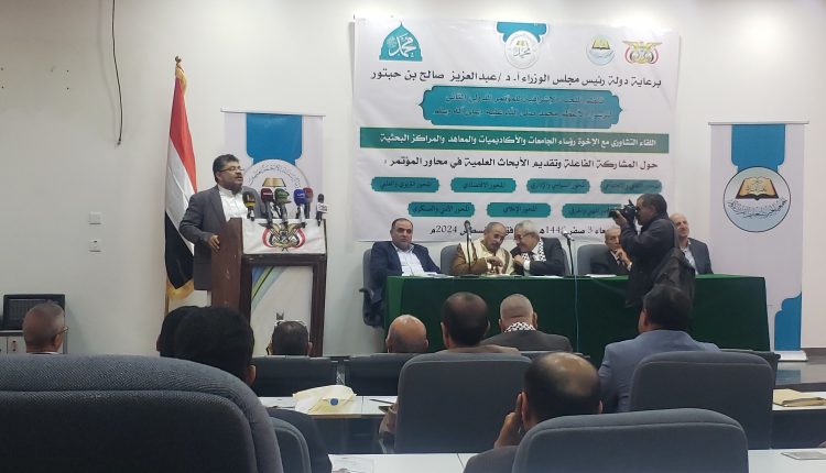 وقال “نريد التحرك من واقع عملي بالنظر إلى الرسول كقائد ميداني وعملي وقدوة ومنهجية، ننطلق من خلاله لتعزيز دور مراكز الأبحاث العلمية والباحثين والمهتمين” .. مشدداً على ضرورة تعزيز الارتباط بالقرآن الكريم والرسول عليه الصلاة والسلام والانطلاق منهما في تقديم أبحاث تعالج مشاكل المجتمع في مختلف التخصصات والمجالات.