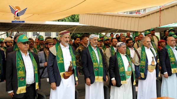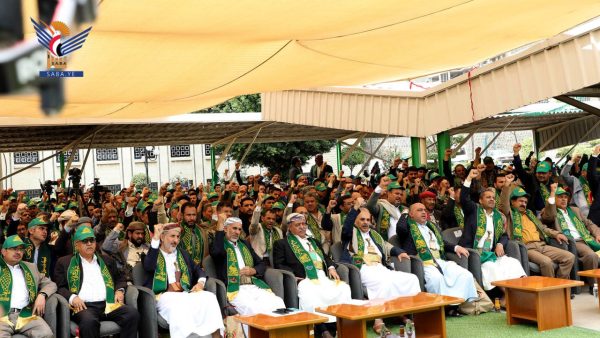 وأكد استمرار الشعب اليمني في نصرة الشعب الفلسطيني ومساندته والتضامن معه في مواجهة العدوان الأول أمريكا وإسرائيل وحلفائهم.