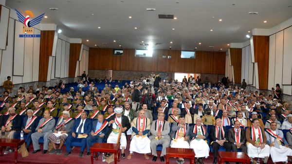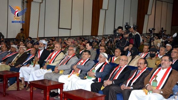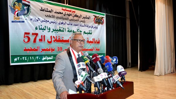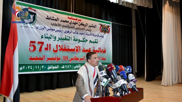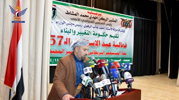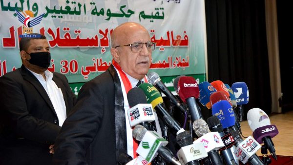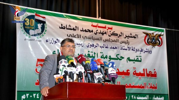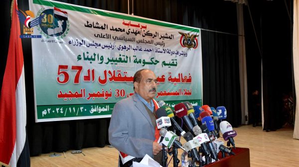 وقال ” ونحن نحتفي اليوم بذكرى الـ 30 من نوفمبر في صنعاء عاصمة العزة والشموخ والكرامة، يحز في نفوسنا أنه لايزال هناك جزء من أرضنا تحت الاحتلال الأمريكي السعودي الإماراتي”.