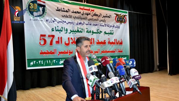 فيما تطرق محافظ شبوة عوض العولقي في كلمة المناضلين إلى التضحيات التي قدمها أبناء اليمن جنوباً وشمالاً في مواجهة الاستعمار البريطاني وصولاً إلى التحرير بعد 129 عاماً من الاستعمار.. مؤكدا أن ثورة 14 أكتوبر كانت ثورة في مختلف الجوانب وبكل فئات المجتمع حتى حققت الانتصار.. لافتا إلى الإنجازات التي حققتها ثورتا سبتمبر وأكتوبر رغم التدخلات الخارجية والمؤامرات حتى جاءت ثورة 21 سبتمبر لتصحح مسار الثورتين وتوحد الشعب اليمني تحت مظلة المسيرة القرآنية لبناء مستقبل اليمن بالاعتماد على الذات.