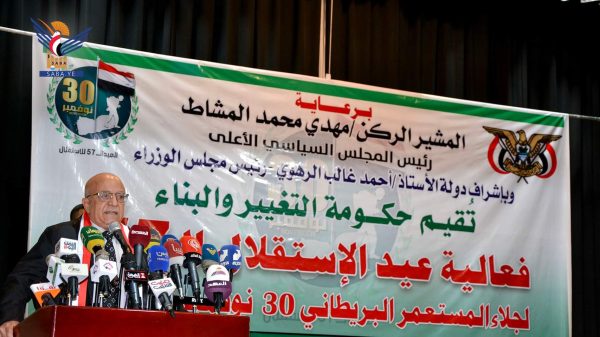وفي الفعالية التي حضرها رئيسا مجلسي النواب الأخ يحيى الراعي والشورى محمد العيدروس ألقى رئيس مجلس الوزراء أحمد غالب الرهوي كلمة هنأ في مستهلها الجميع بذكرى الاستقلال من المستعمر البريطاني، وهو الإنجاز التاريخي الوطني العظيم الذي يجب الاحتفاء به دوما.