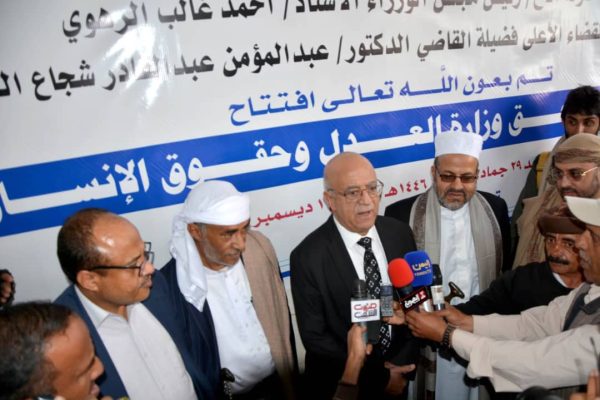 أفتتح دولة رئيس مجلس الوزراء الاستاذ احمد غالب الرهوي ورئيس مجلس القضاء الأعلى القاضي الدكتور عبد المؤمن شجاع الدين ورئيس المحكمة العليا القاضي عبد الصمد المتوكل ووزيرالعدل القاضي مجاهد احمد عبد الله، اليوم، المبنى الملحق لوزارة العدل وحقوق الانسان بتمويل من صندوق دعم القضاء.
