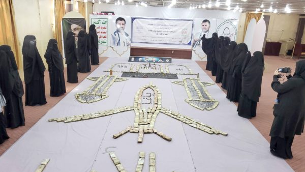 حملة الإنفاق الشعبية (حي على خير اليمن) تتسلم من الهيئة النسائية قافلةً بأكثر من 50 مليون ريال