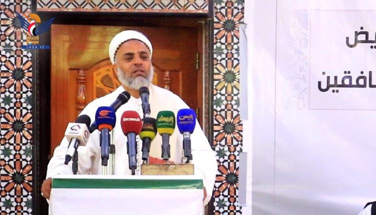 من جانبه تطرق نائب رئيس رابطة علماء اليمن، العلامة عبد المجيد الحوثي، إلى الموقف المسؤول لليمن في الجهاد ضد الطغاة وأئمة الكفر المستكبرين ومساندة ونصرة الشعب الفلسطيني بينما ارتمى الآخرون في أحضان اليهود والنصارى.