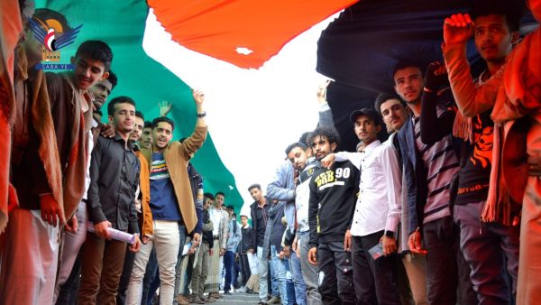 شهدت جامعة صنعاء اليوم مسيرة طلابية حاشدة بعنوان “إلى جانب جيشنا وشعبنا .. ثابتون مع غزة وجاهزون لمواجهة أي عدوان، ونصرة للشعب الفلسطيني”.