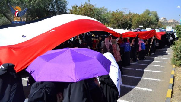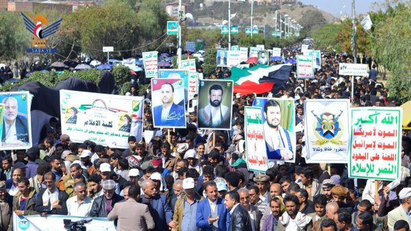 كما دعا بيان المسيرة الشعب اليمني إلى اليقظة والحذر من مخططات الأعداء وإرجافهم، ومحاولات إبعاد اليمنيين أو إشغالهم عن هذه المعركة المشرفة والنفير خفافاً وثقالا إلى التعبئة والاستنفار والاستعداد لأي مواجهة فلن تكون العاقبة إلا النصر”.