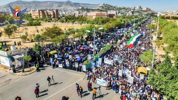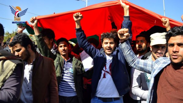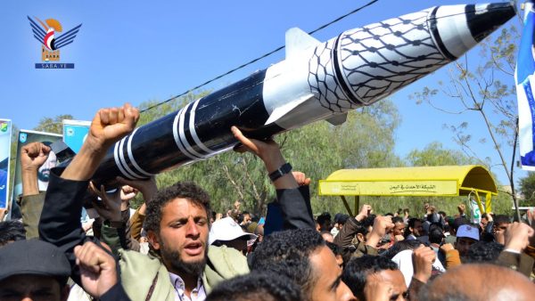 وباركت الحشود الطلابية، عمليات القوات المسلحة اليمنية التي تستهدف عمق كيان العدو الصهيوني وأصابت الصهاينة بالذعر .. مؤكدة على نصرة الشعب الفلسطيني وغزة والدفاع عن اليمن وأمنه وسيادته واستقلاله.