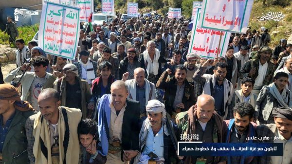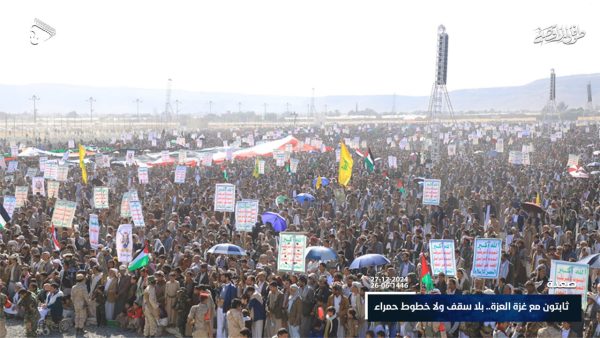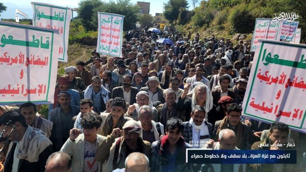 وباركت الحشود في المسيرات الجماهيرية تصاعد العمليات العسكرية النوعية التي تنفذها القوات المسلحة اليمنية ضد قوى الطغيان والاستكبار واستهداف عمق كيان العدو الصهيوني المجرم في الأراضي المحتلة، انتصاراً لمظلومية الشعب الفلسطيني، ورداً على العدوان على اليمن.