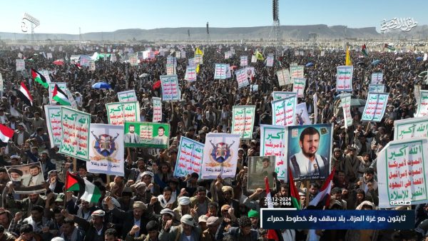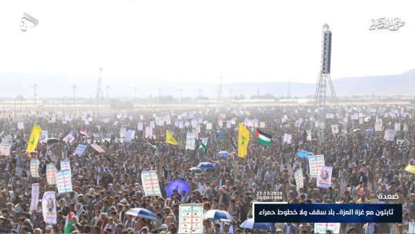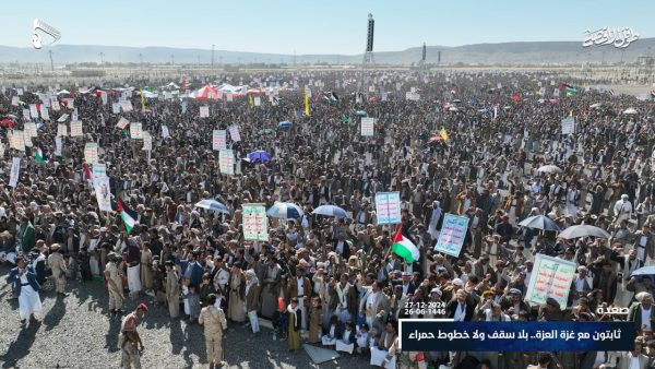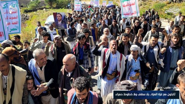 وندد بيان المسيرات ب”جريمة القرن المستمرة في غزة للأسبوع الرابع والستين على يد العدو الصهيوني المجرم المستمر في اقتراف أبشع جرائم الإبادة الجماعية بشراكة أمريكية ودعم من بعض الدول الأوروبية والغربية، في ظل تخاذل عربي وإسلامي مخز ومقيت، وعجز وصمت أممي وعالمي معيب ومريب”.