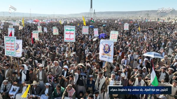 وأشادت الحشود بالإنجاز الأمني الأخير الذي أفشل مؤامرات الصهاينة والأمريكان التي تستهدف الشعب اليمني، بهدف ثنيه عن موقفه العظيم والمشرف تجاه نصرة القضايا المركزية للأمة ومقدساتها وفي مقدمتها القضية الفلسطينية والأقصى الشريف.