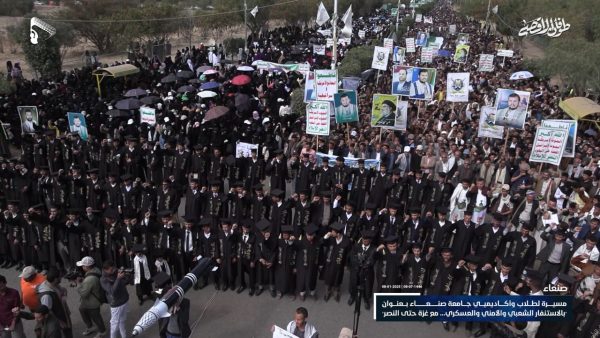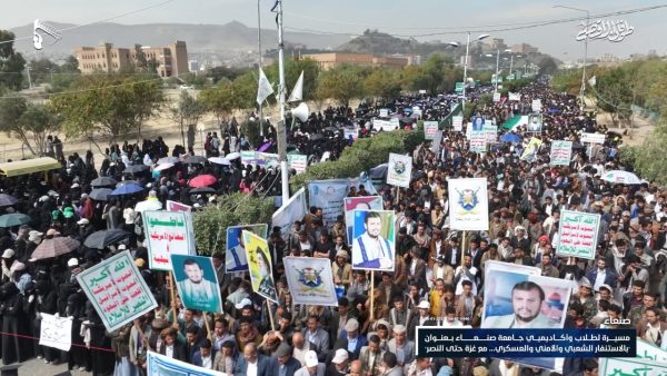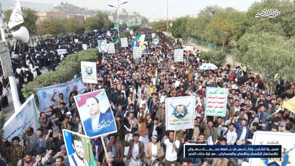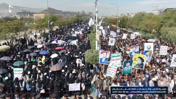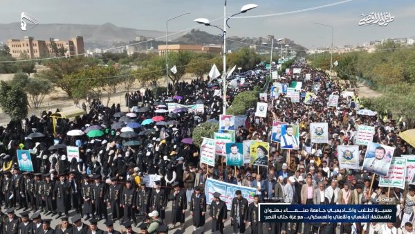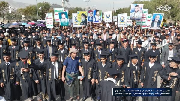 شهدت جامعة صنعاء اليوم مسيرة جماهيرية بمشاركة قيادات ومنتسبي الجامعة تحت شعار “مع غزة بهويتنا الإيمانية رغم العدوان الصهيوني والصمت العالمي” تنديداً باستمرار مجازر الإبادة الجماعية بحق أبناء الشعب الفلسطيني في قطاع غزة.