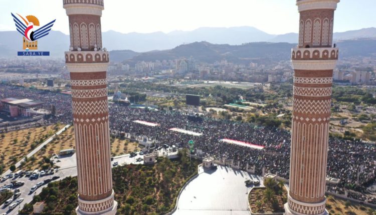 وأكدت الجماهير التي احتشدت في ميدان السبعين بالتزامن مع غارات العدوان على العاصمة صنعاء، ثباتها وتحديها للعدو الأمريكي البريطاني الصهيوني، مهما صعد اعتداءاته وغاراته الإجرامية على اليمن.