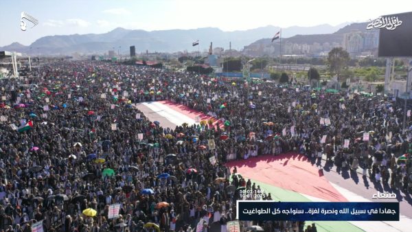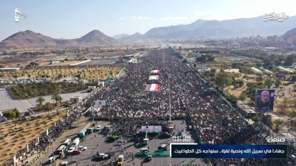 شهدت العاصمة صنعاء اليوم الجمعة، حشوداً مليونية في مسيرة “جهاداً في سبيل الله ونصرة لغزة.. سنواجه كل الطواغيت”.