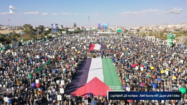 وأكدت الحشود الاستمرار في التعبئة العامة والتحشيد لرفع الجهوزية لمواجهة أي تصعيد للعدوان الأمريكي الصهيوني البريطاني، والتصدي لكل المؤامرات والمخططات الخبيثة التي تستهدف الشعب اليمني.