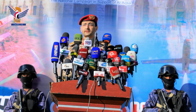 تُجددُ القواتُ المسلحةُ اليمنيةُ التأكيدَ على أنَّها مستمرةٌ في تأديةِ واجباتِها تجاهَ الشعبِ الفلسطينيِّ المظلومِ وأنَّ عملياتِها لن تتوقفَ إلا بوقفِ العدوانِ ورفعِ الحصارِ عن قطاعِ غزة.