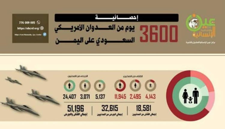 عين الانسانية يكشف إحصائية (3600) يوم من العدوان السعودي الأمريكي على اليمن