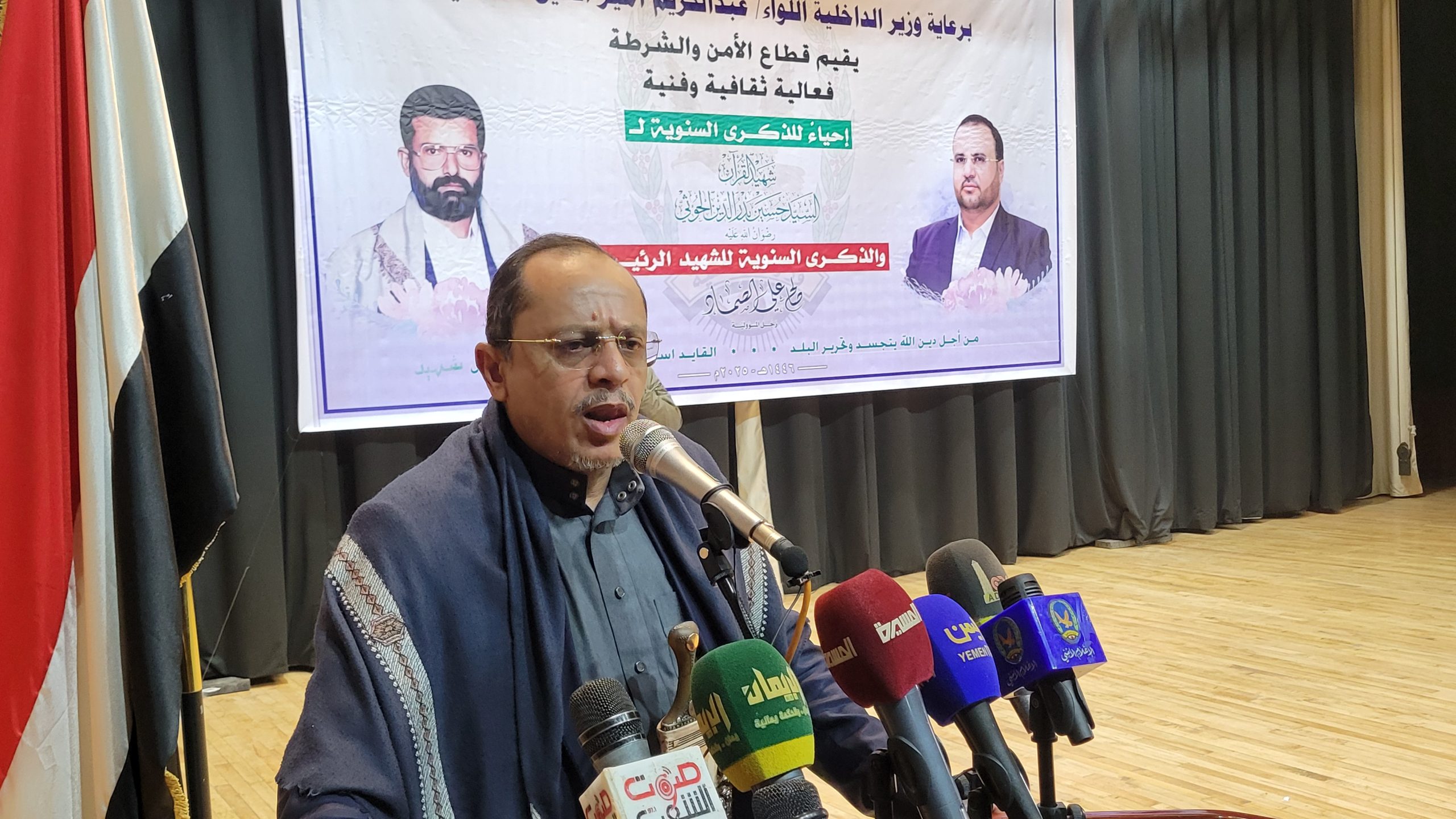 نظم قطاع الأمن والشرطة بوزارة الداخلية اليوم فعالية خطابية بالذكرى السنوية للشهيد القائد السيد حسين بن بدر الدين الحوثي والشهيد الرئيس صالح الصماد.