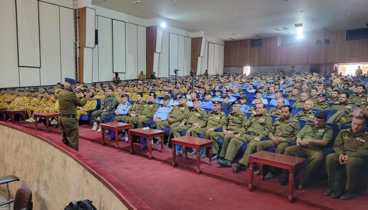 وفي الفعالية التي حضرها وكيل وزارة الداخلية لقطاع الأمن والشرطة اللواء أحمد جعفر، ومديرا مكافحة المخدرات العميد أكرم عامر، والمباحث الجنائية العميد أحسن حجازي، والعميد الركن أحمد الشرفي، ومستشار وكيل قطاع الأمن العميد الركن محمد الصباري، ورئيس غرفة العمليات المشتركة بوزارة الداخلية العميد الركن صلاح المنصور، أكد مدير عام المرور اللواء الدكتور بكيل البراشي أن ذكرى استشهاد الشهيد القائد السيد حسين الحوثي محطة إيمانية لتعزيز المبادئ والقيم القرآنية التي أرسى دعائمها، معبراً عن رفضه للظلم والطغيان والفساد والإفساد في الأرض.