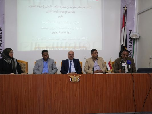 نظم مركز الهدهد للدراسات الأثرية بالتعاون مع المتحف الحربي بصنعاء، اليوم ندوة ثقافية بعنوان “التراث اليمني.. عشر سنوات من الصمود”.